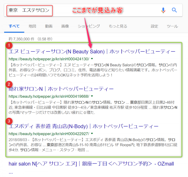 おそらくエステの来客の多くがスマホでこのように検索します。